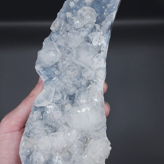 Cubic Apophyllite on Blue Chalcedony Statement Cutbase from India 1.042kg