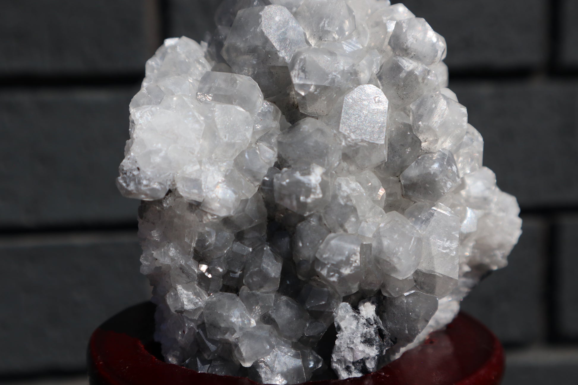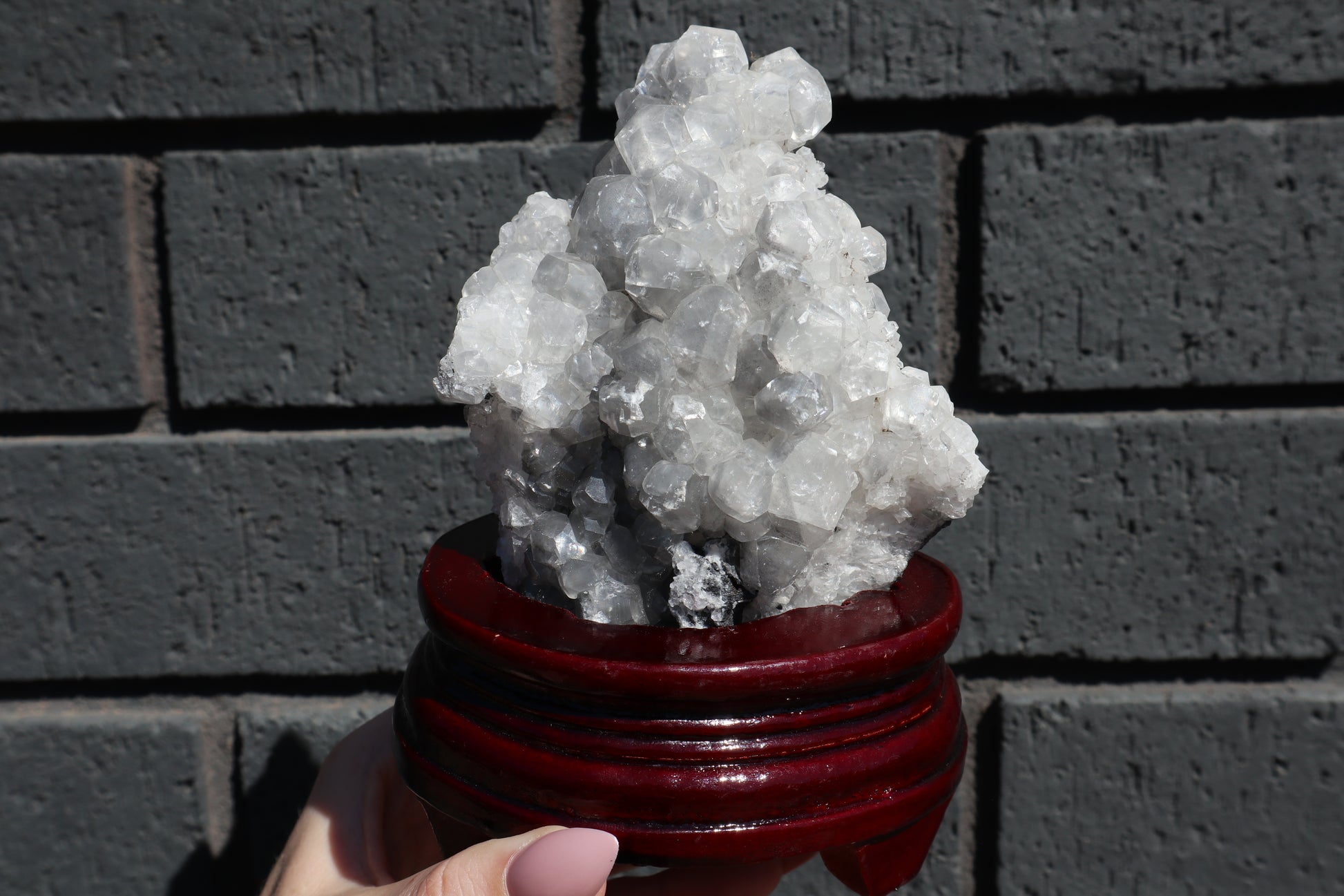 Diamond Calcite & Fluorite Specimen on Wooden Base